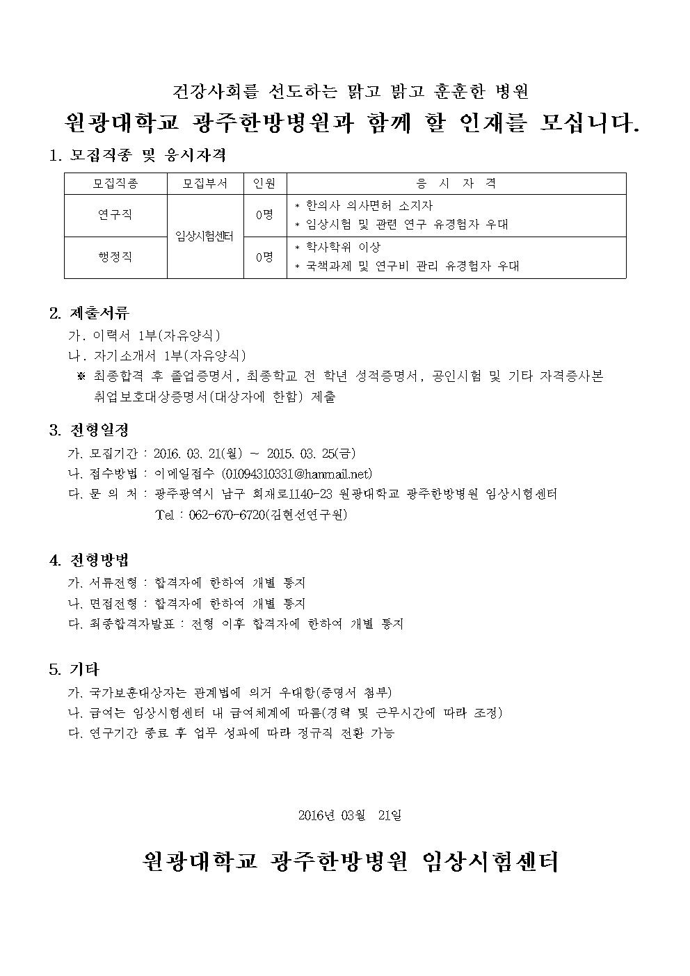 원광대학교 광주한방병원과 함께 할 인재를 모십니다.