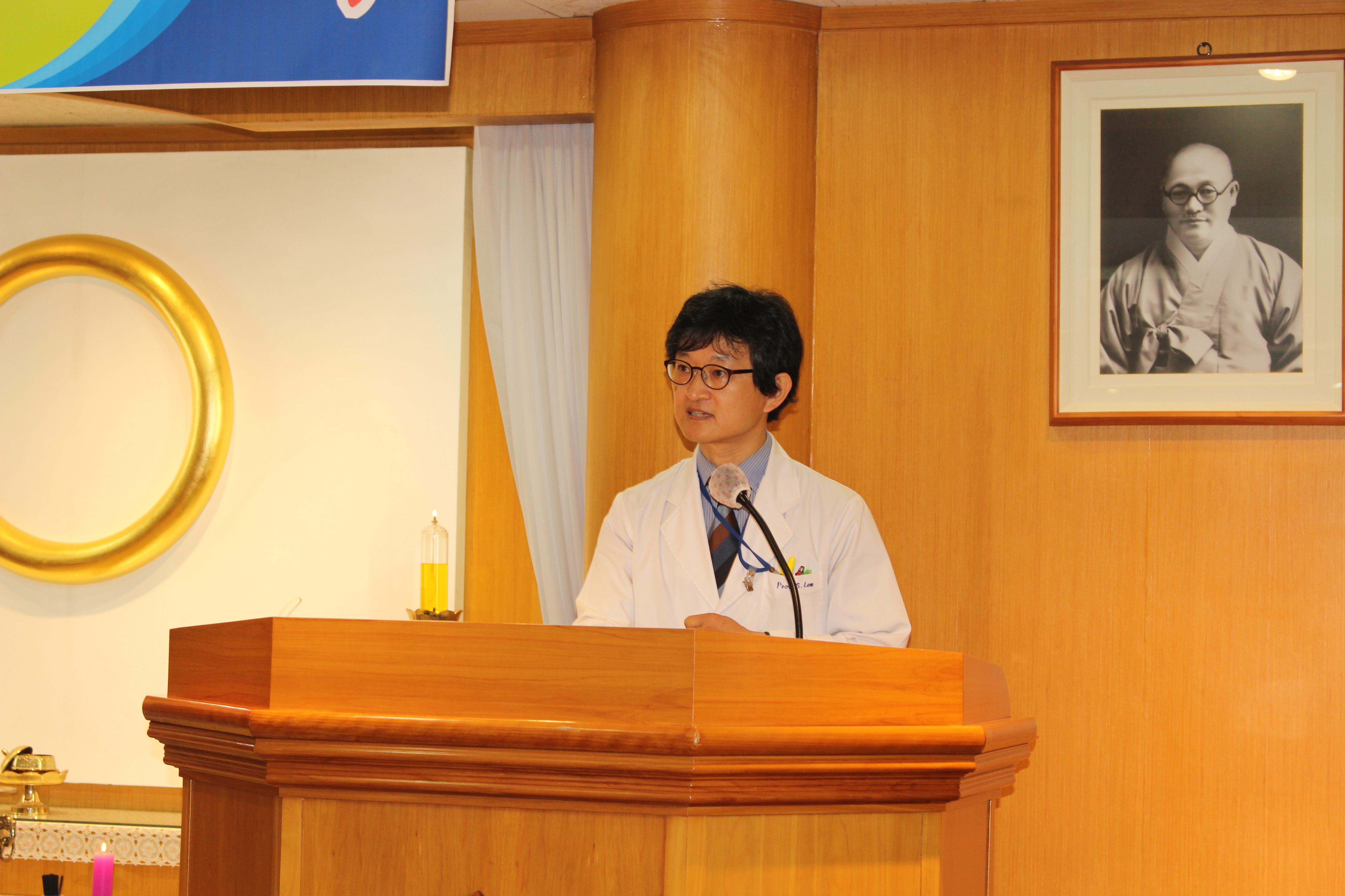 2021년 06월 29일 본 원 법당에서 코로나19 감염병 예방 지침에 따라 엄격하게 제한된 인원이 참가한 가운데 원광대학교 광주한방병원 병원장 이·취임식이 거행되었습니다.